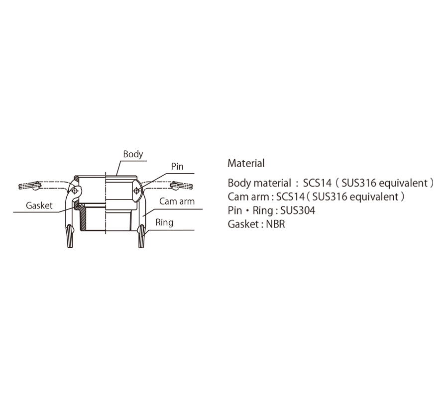 Thân đầu nối: SCS14 (tương đương SUS316)