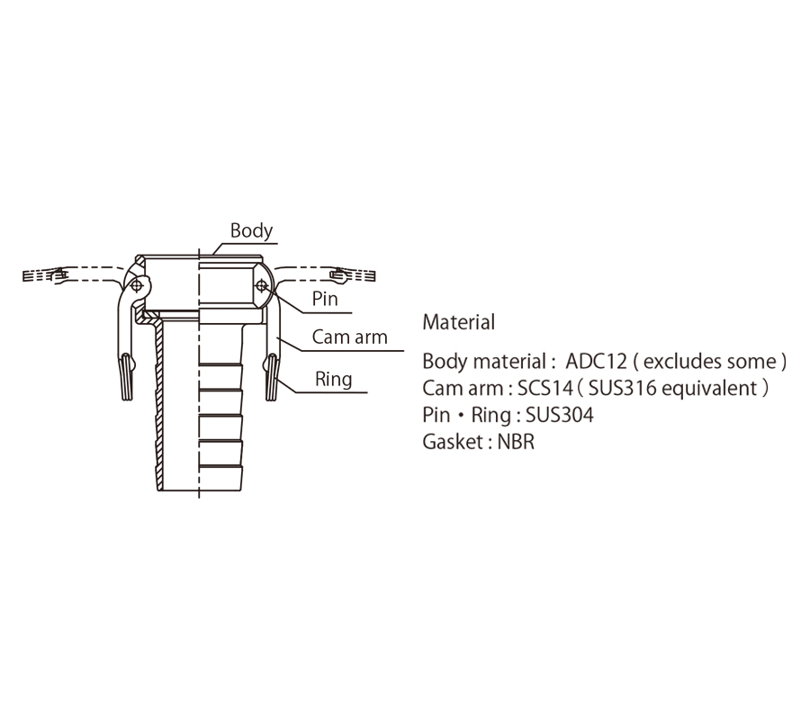Thân đầu nối: Hợp kim nhôm (2",3",4": ADC12, 1-1/2",2-1/2",5",6": AC4CH)